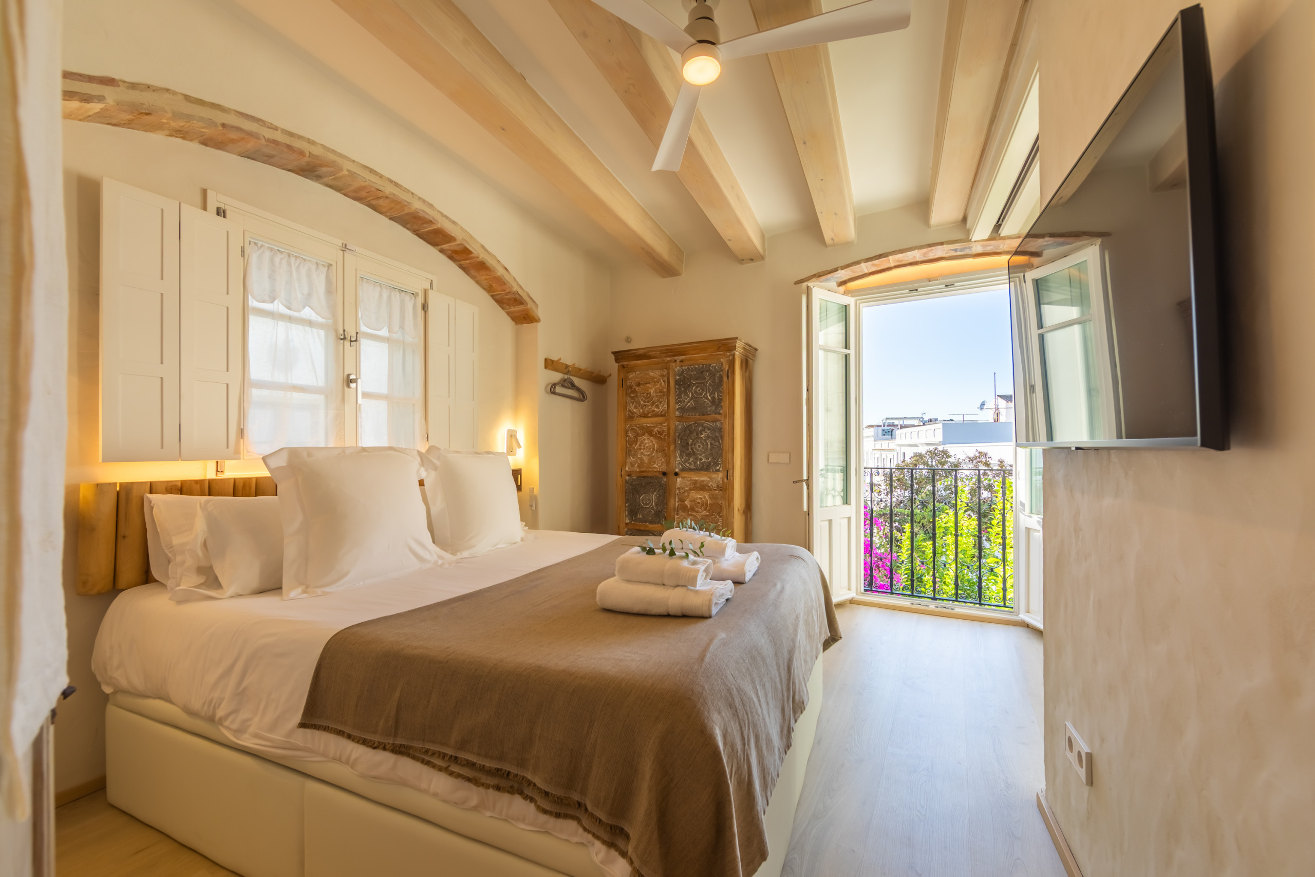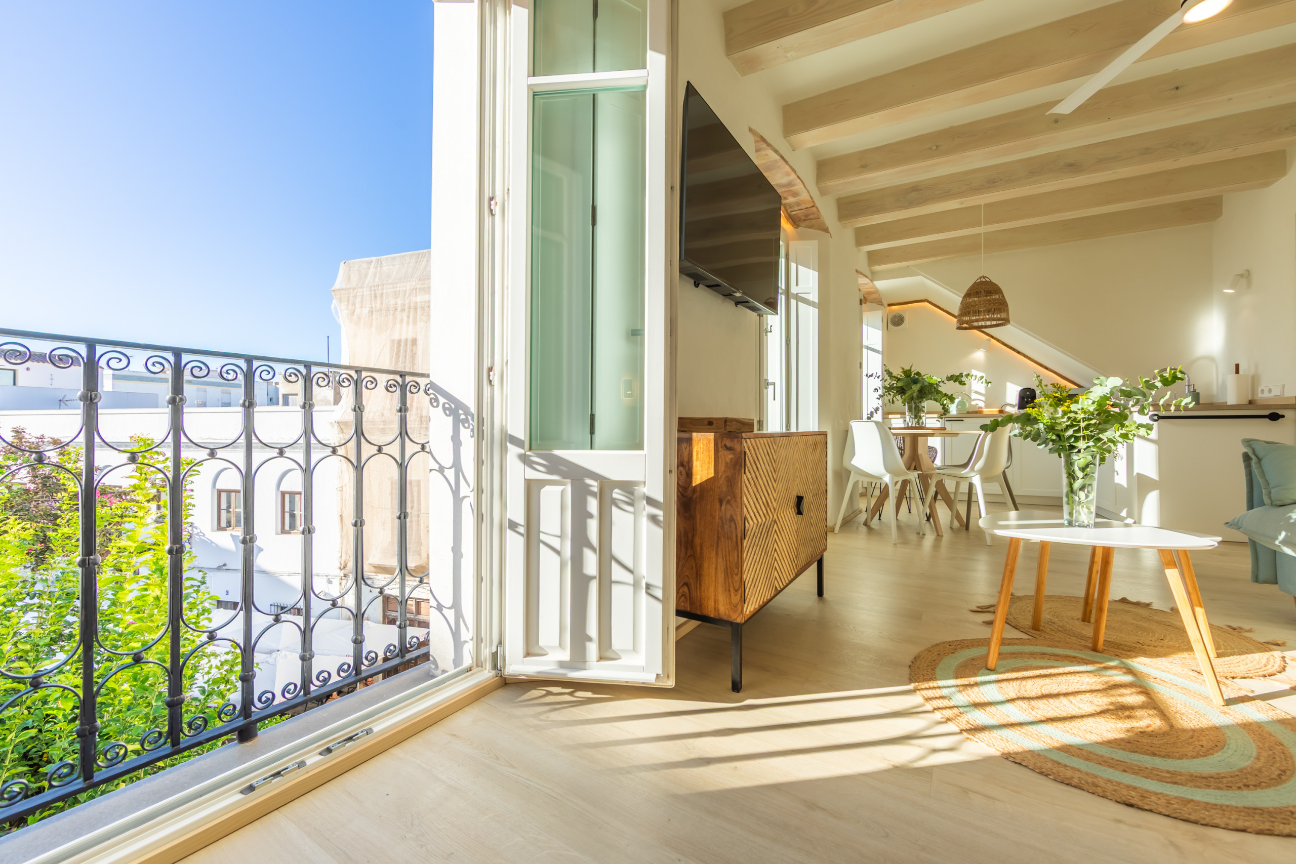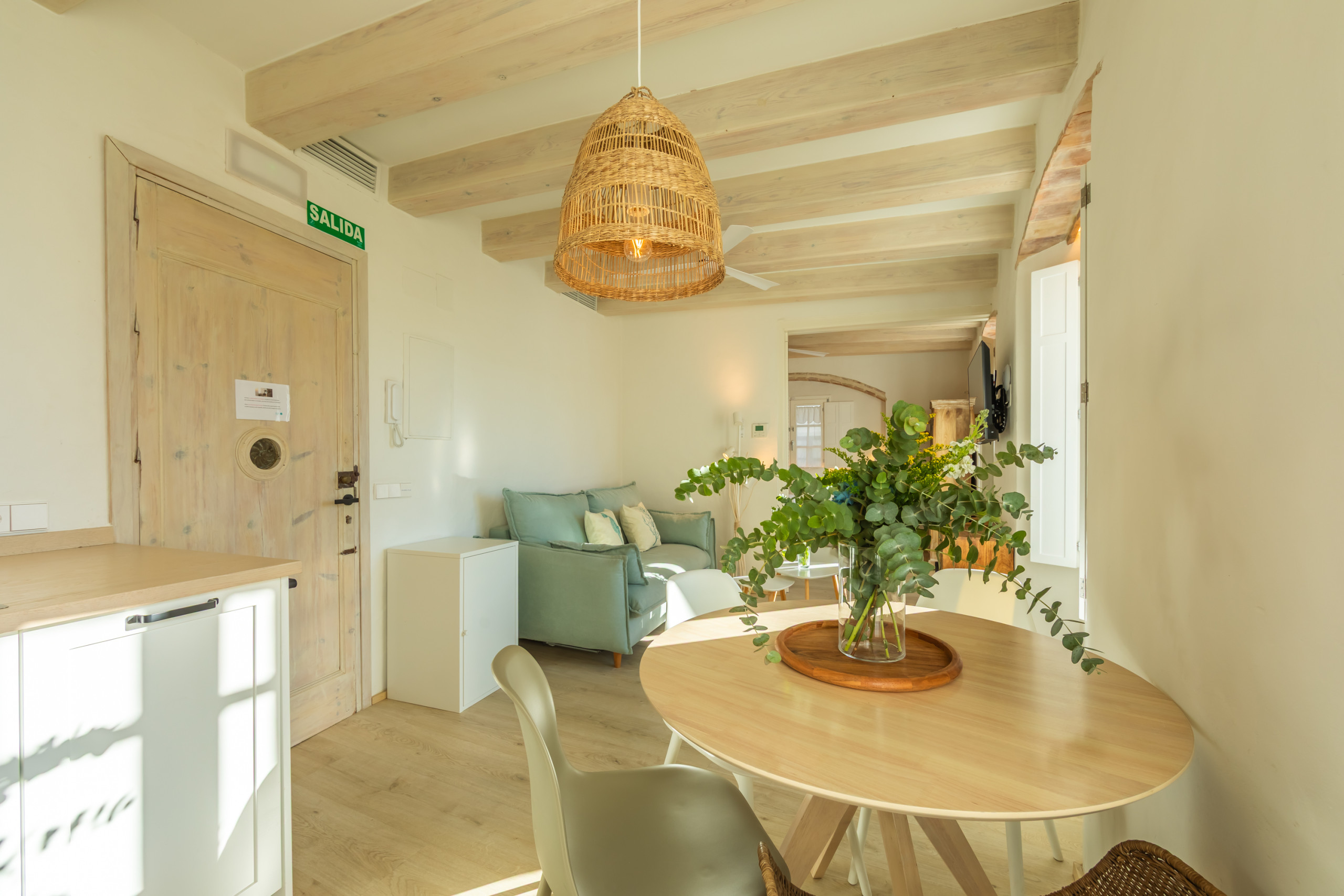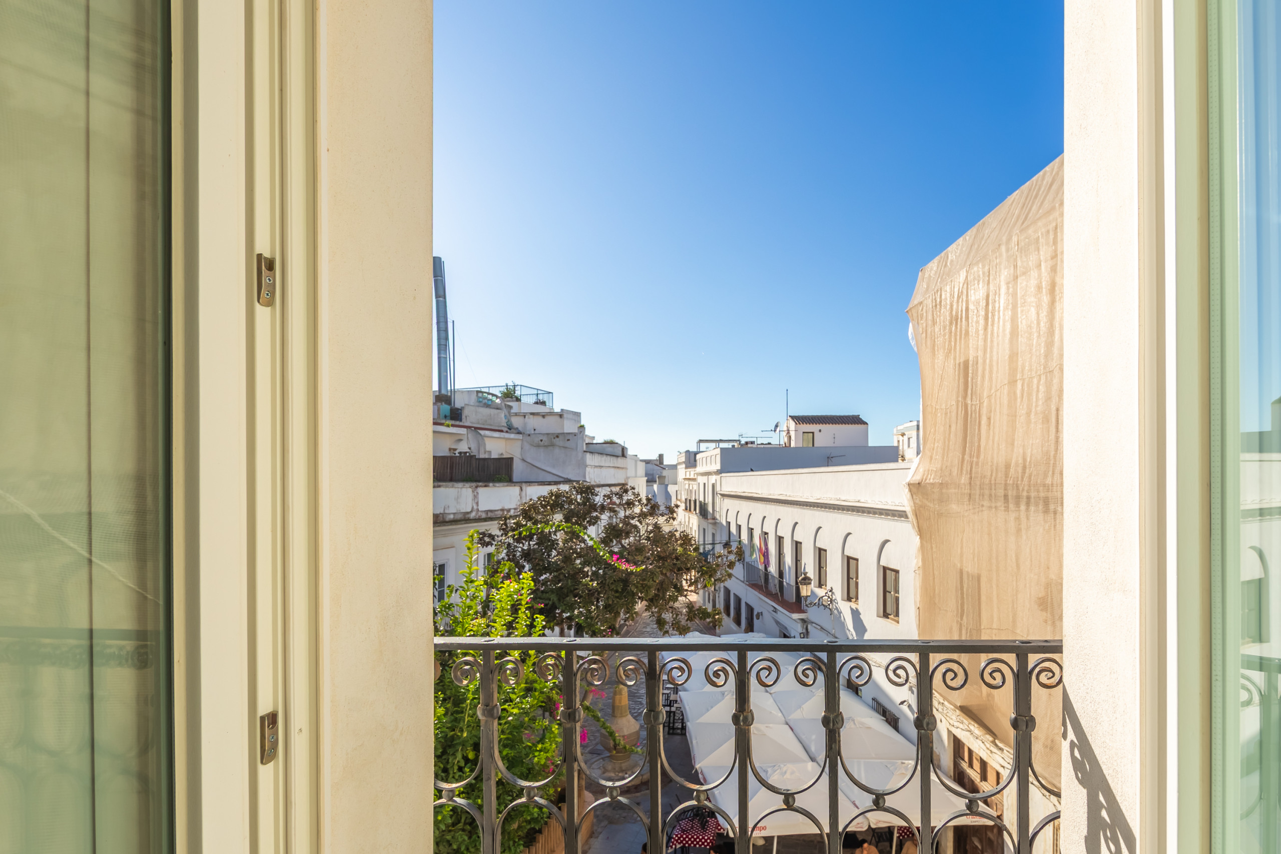 Desde sus ventanas se contempla una preciosa plaza andaluza, llena de vida y encanto, que aporta carácter y autenticidad al entorno. En el interior, sin embargo, lo que predomina es la calma: un ambiente refinado, con líneas limpias, tonos suaves y una cuidada selección de mobiliario y decoración.