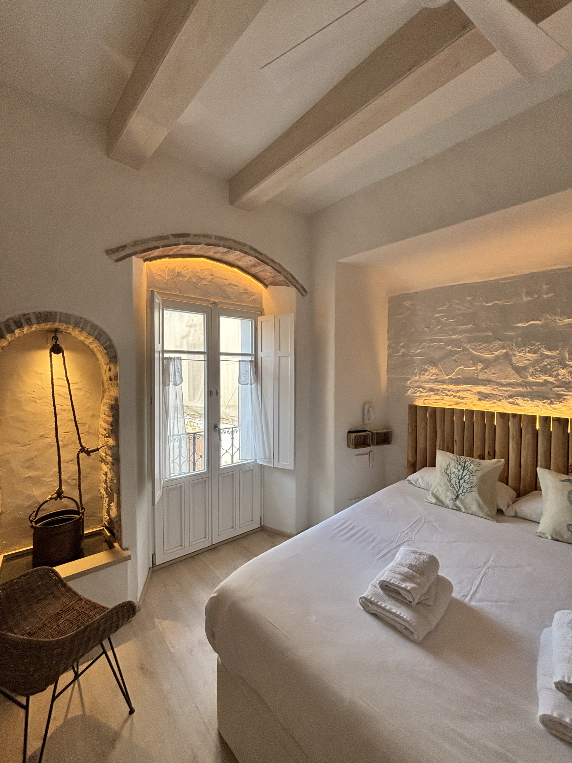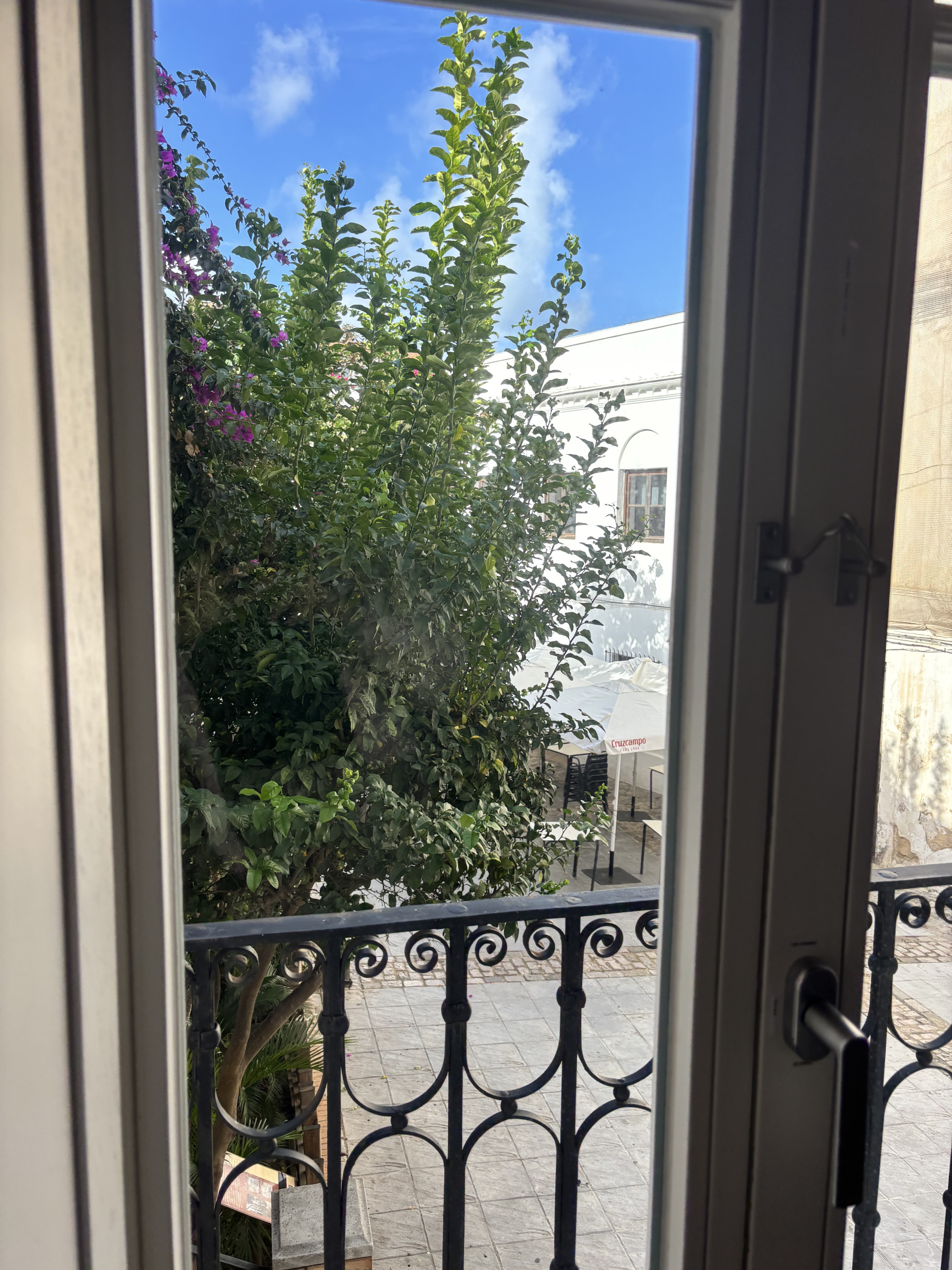 Desde sus ventanas se contempla una preciosa plaza andaluza, llena de vida y encanto, que aporta carácter y autenticidad al entorno. En el interior, sin embargo, lo que predomina es la calma: un ambiente refinado, con líneas limpias, tonos suaves y una cuidada selección de mobiliario y decoración.